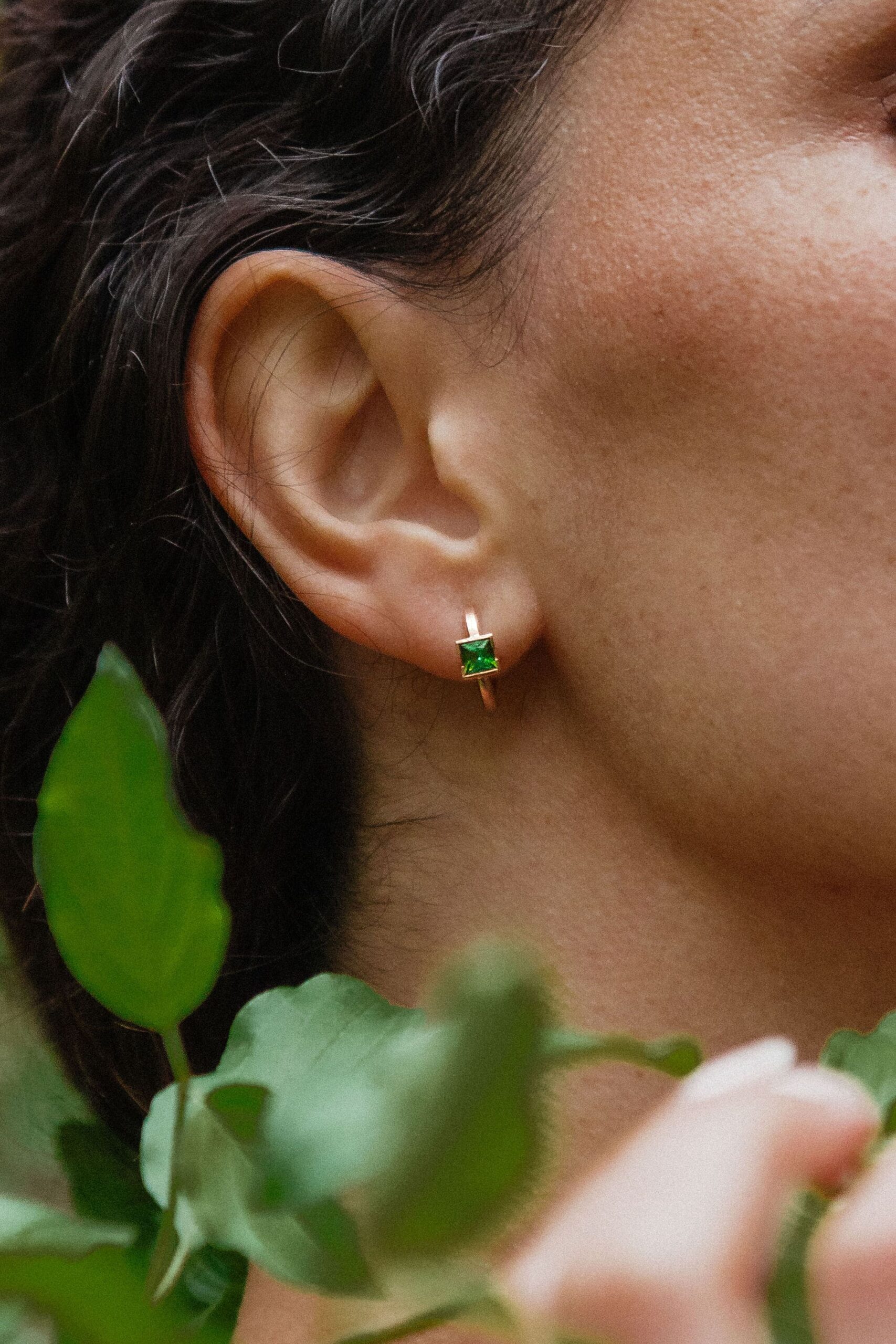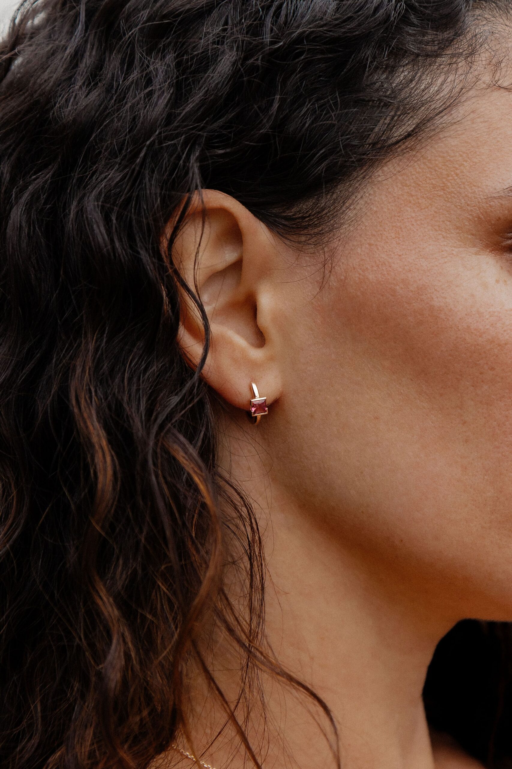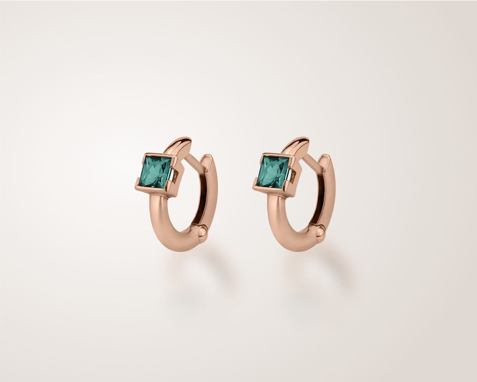 Déclinées en tourmalines vertes et tourmalines roses carrés.