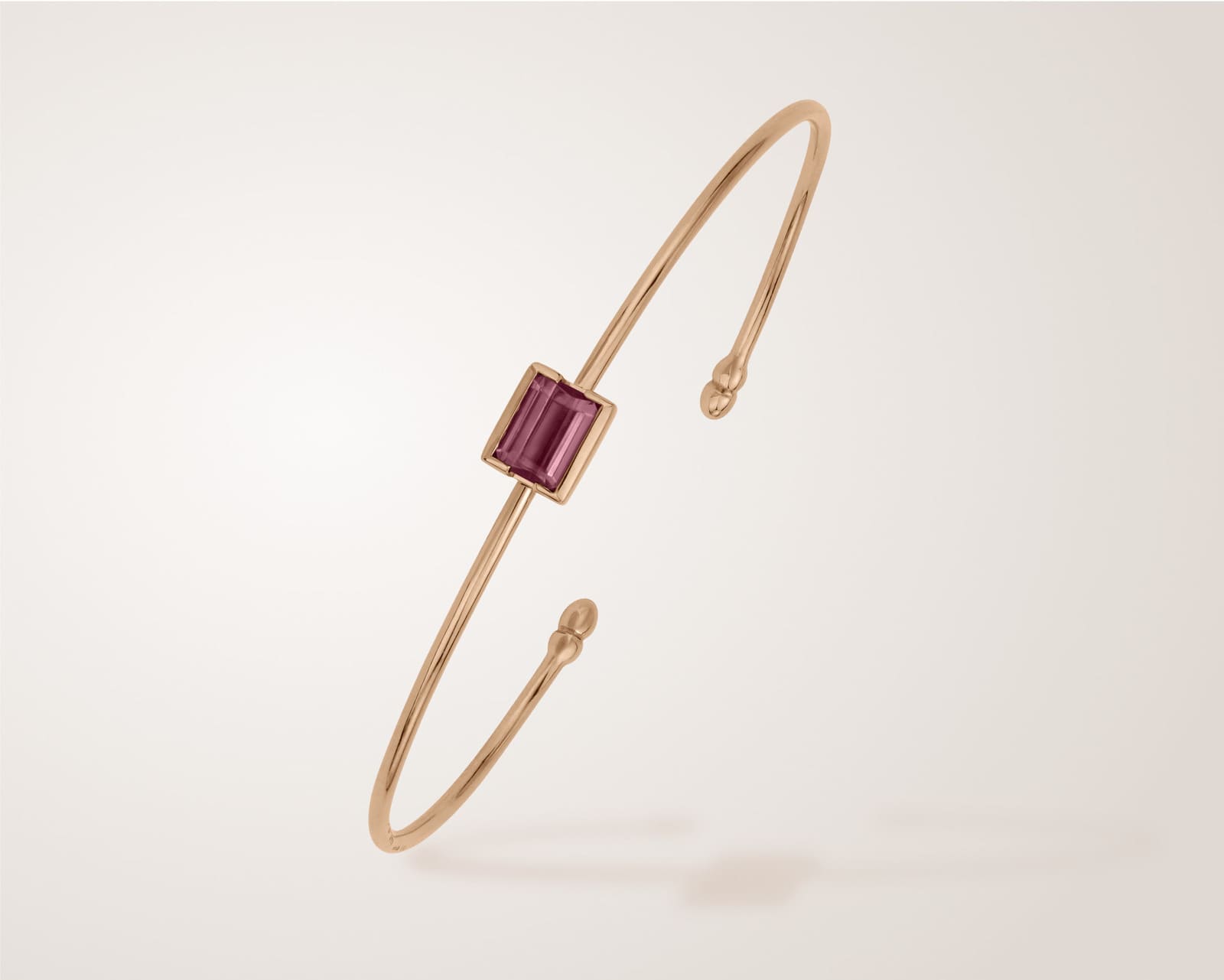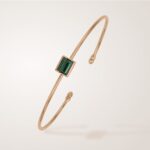 Bracelet rigide en fil rond, sublimé par une pierre fine octogonale au centre.